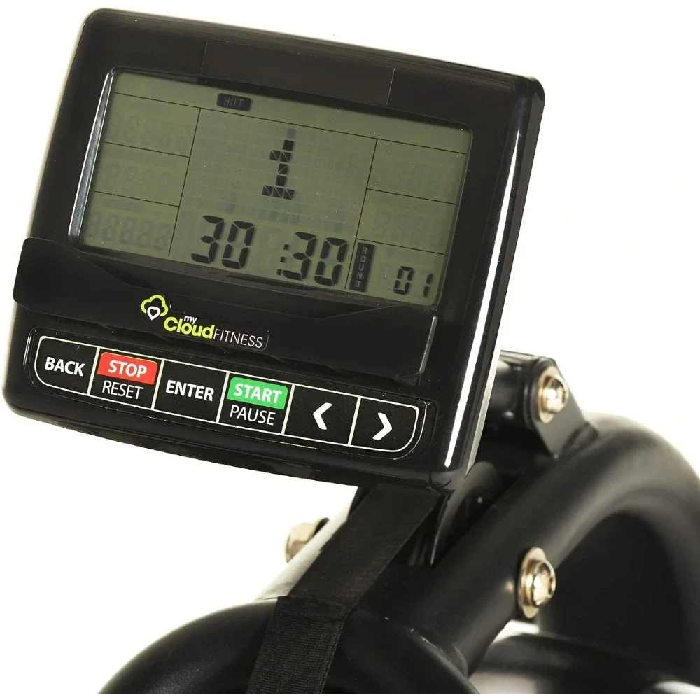 3 Customizable HIIT (High-Intensity Interval Training) Intervals, 5 Standard preset workout goals, 13 Level race options and 3 Workout target goal settings from the console: time, distance and calories burned